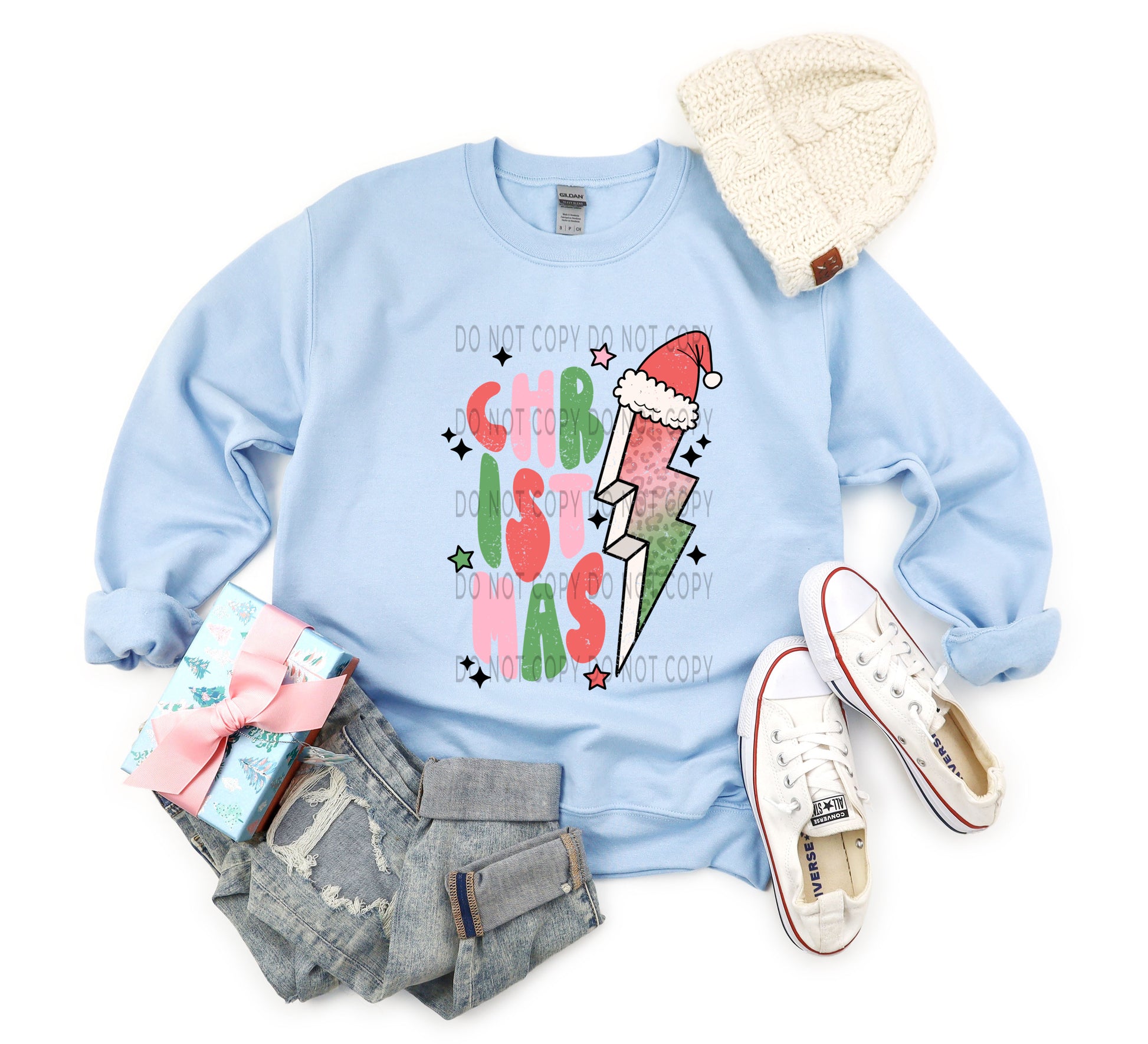 Christmas Leopard Bolt Santa Blk Stars- DTF