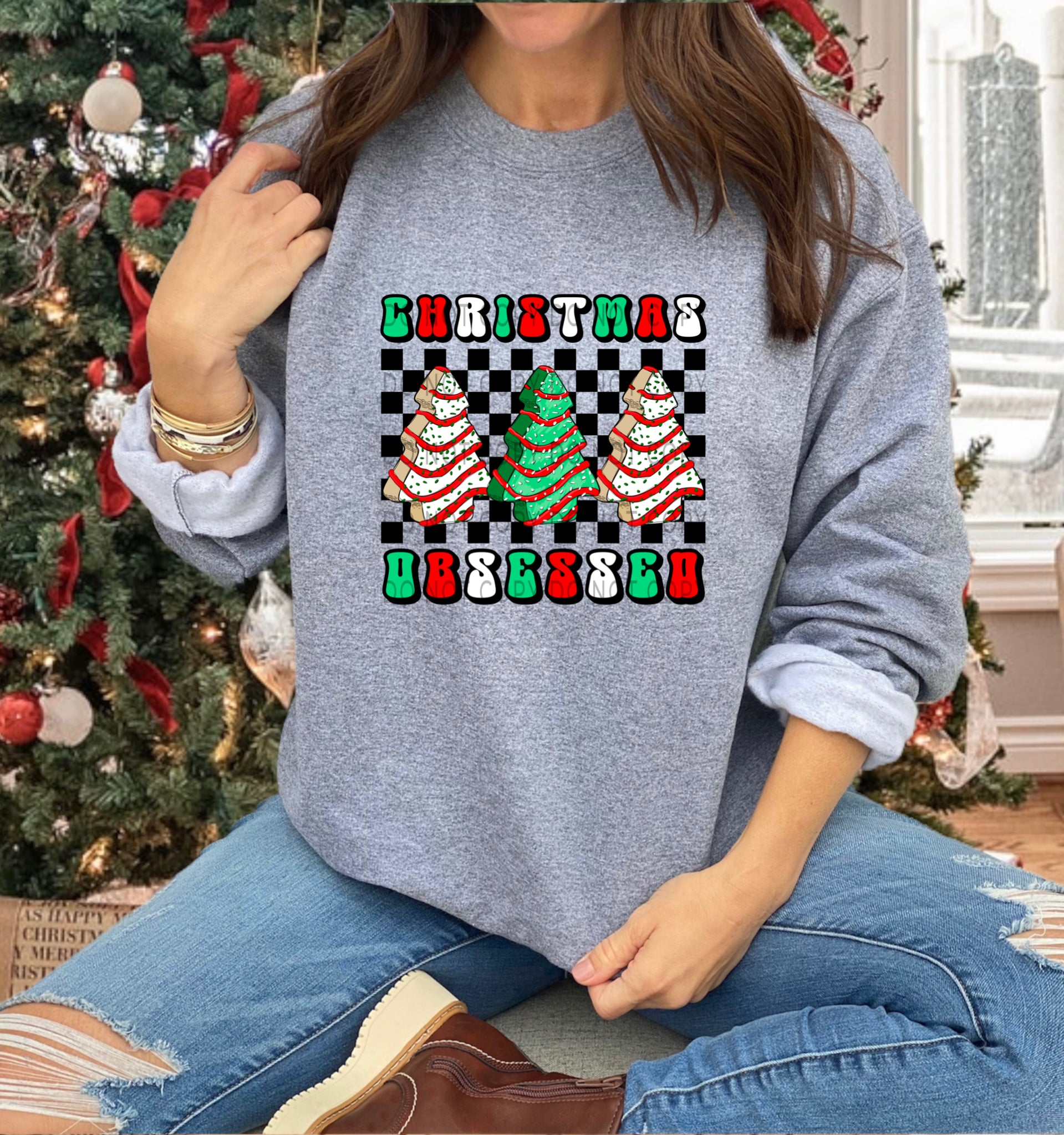 Christmas Trees Obsessed Checkered - DTF