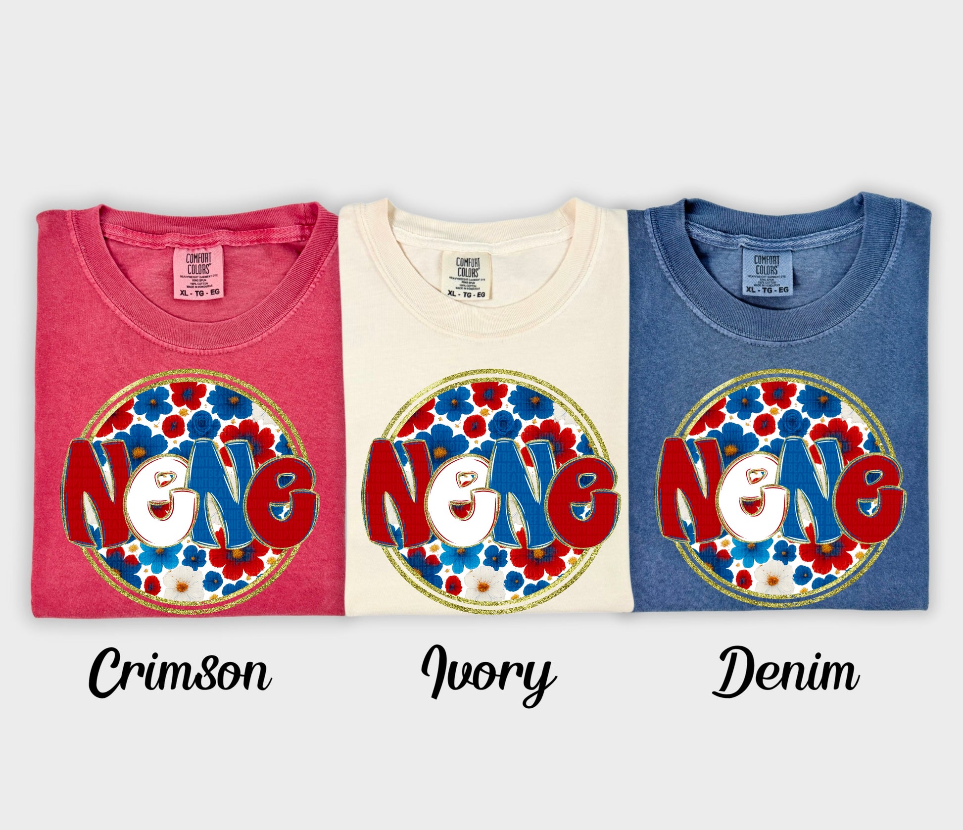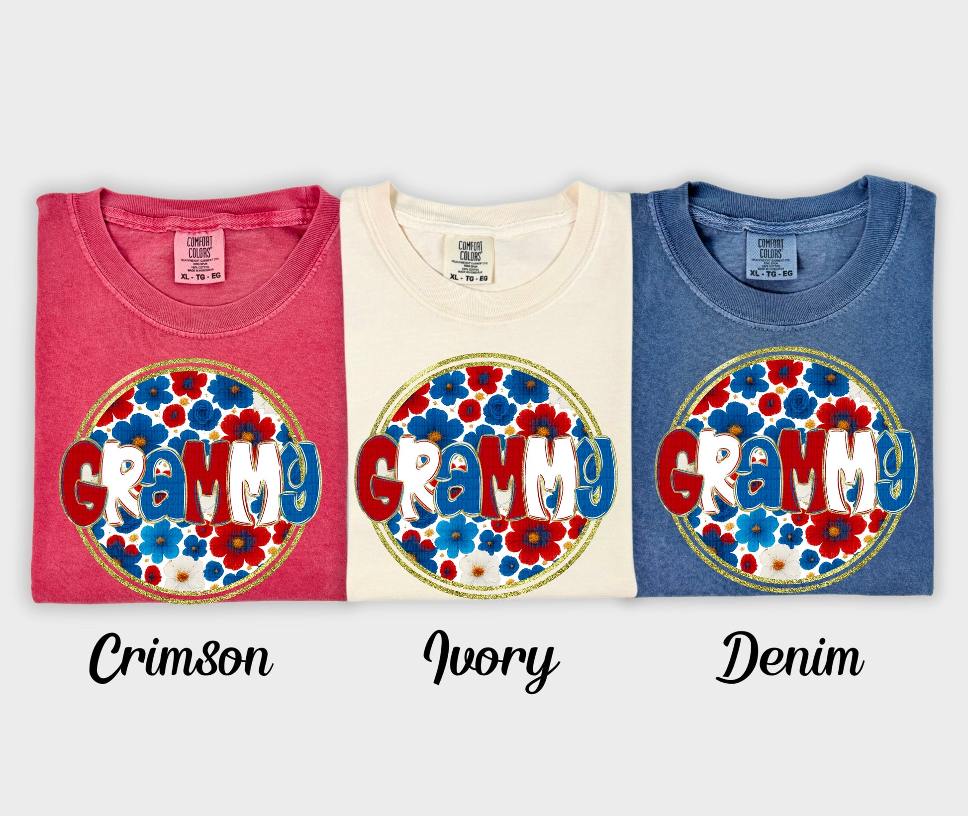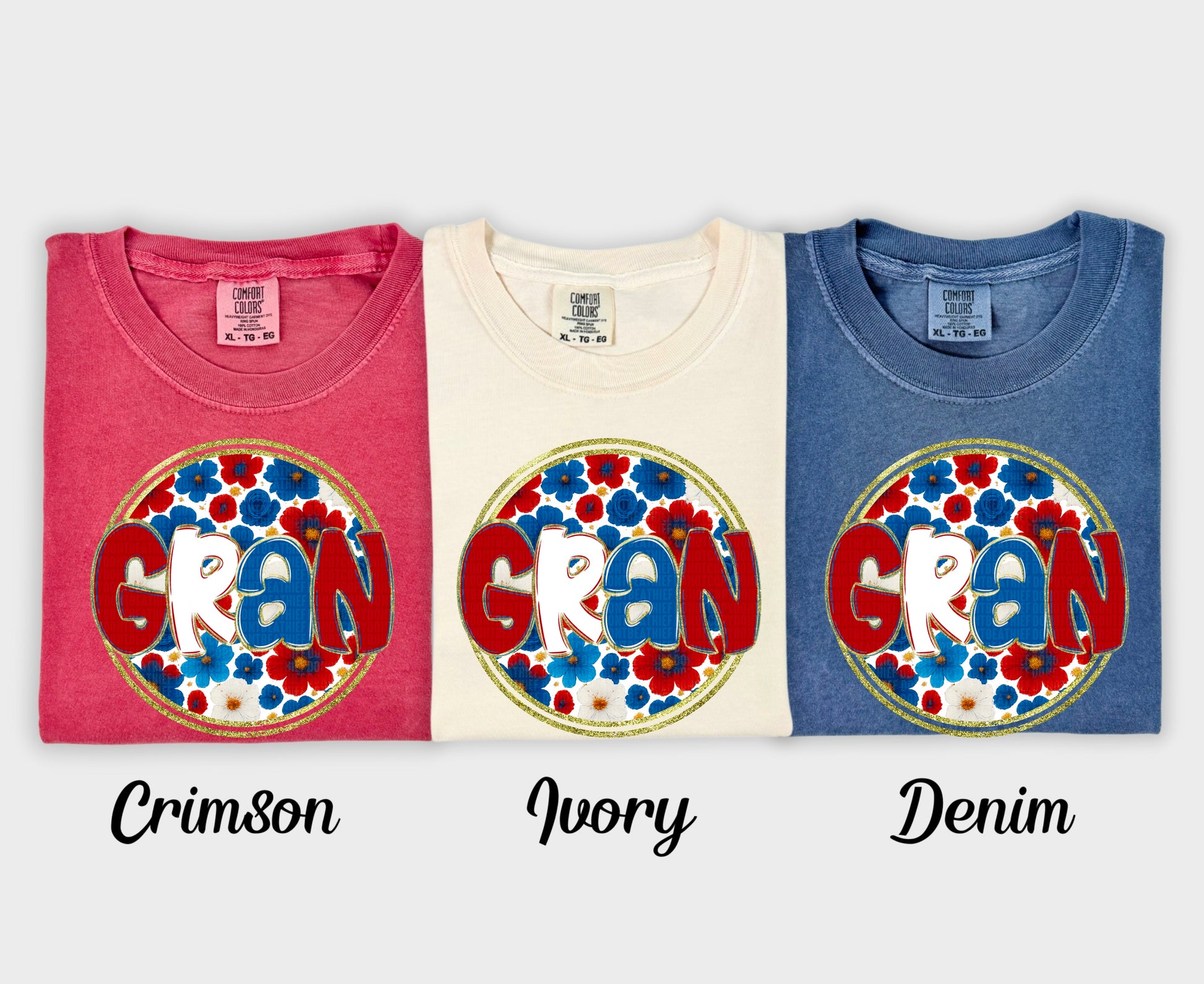 Actual colors may vary. Every monitor displays colors differently, and lighting or screen settings can affect how a color appears. Because of this, we can’t guarantee that the color you see on your screen will perfectly match the final printed transfer though we always strive to get as close as possible.