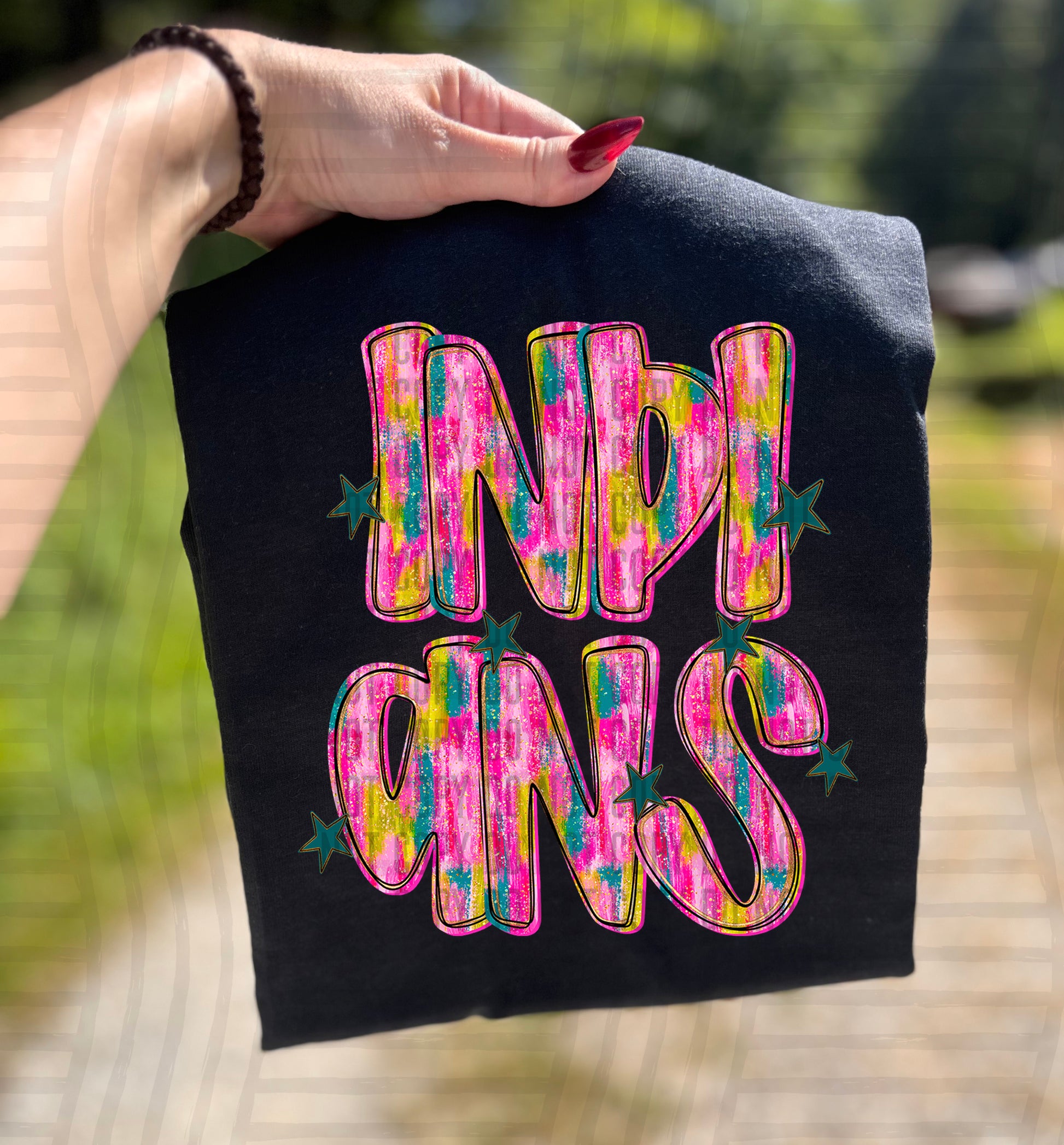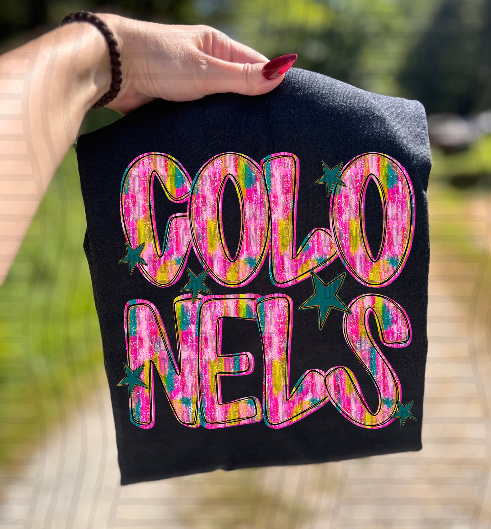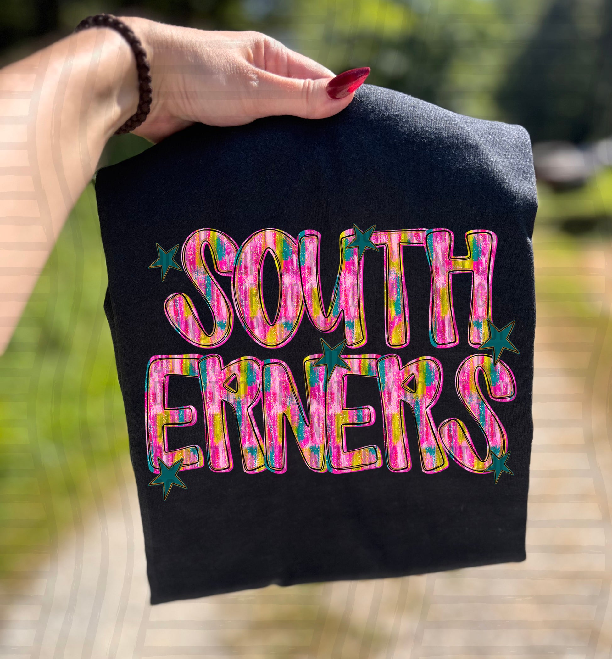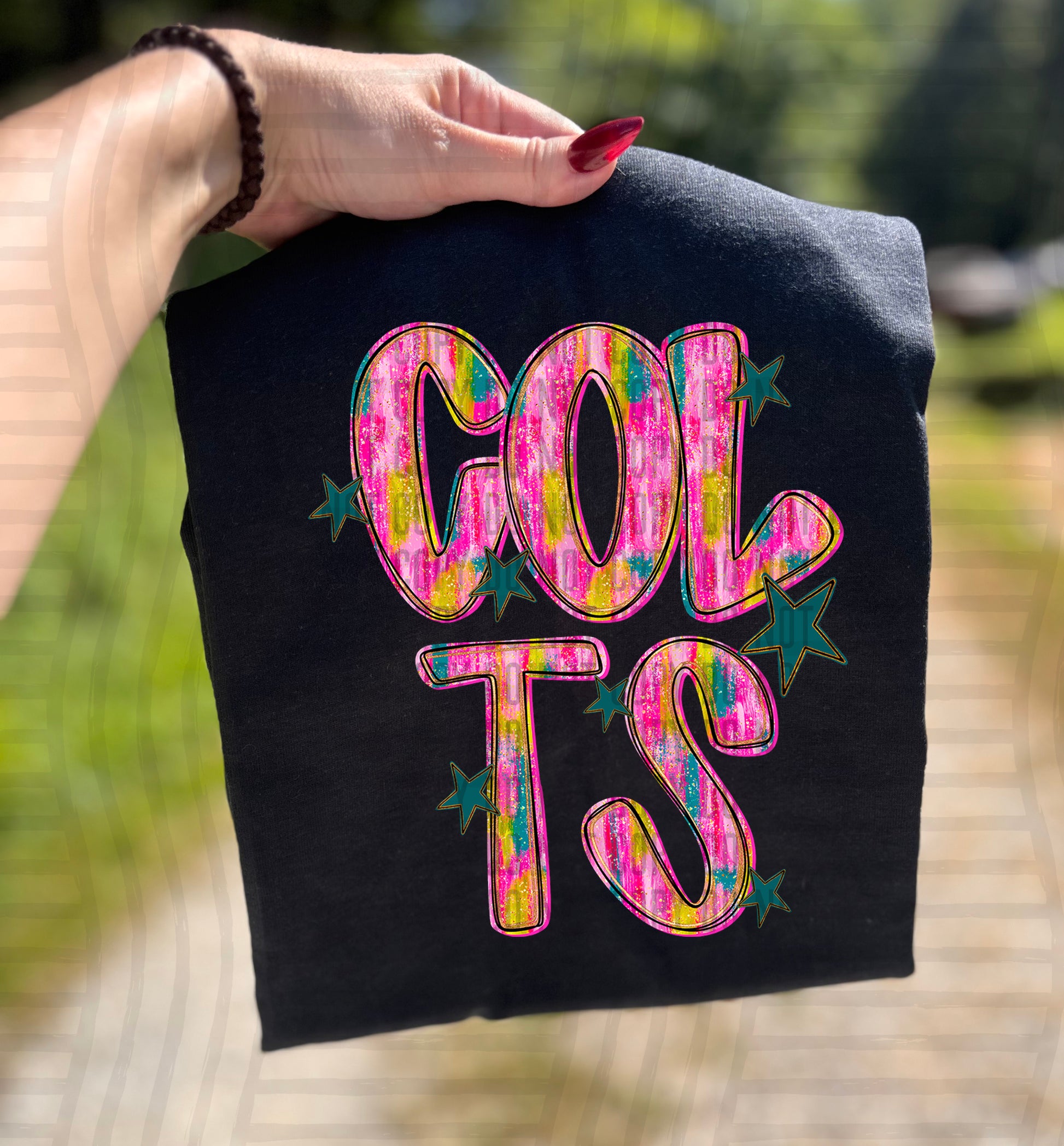 Actual colors may vary. Every monitor displays colors differently, and lighting or screen settings can affect how a color appears. Because of this, we can’t guarantee that the color you see on your screen will perfectly match the final printed transfer though we always strive to get as close as possible.
