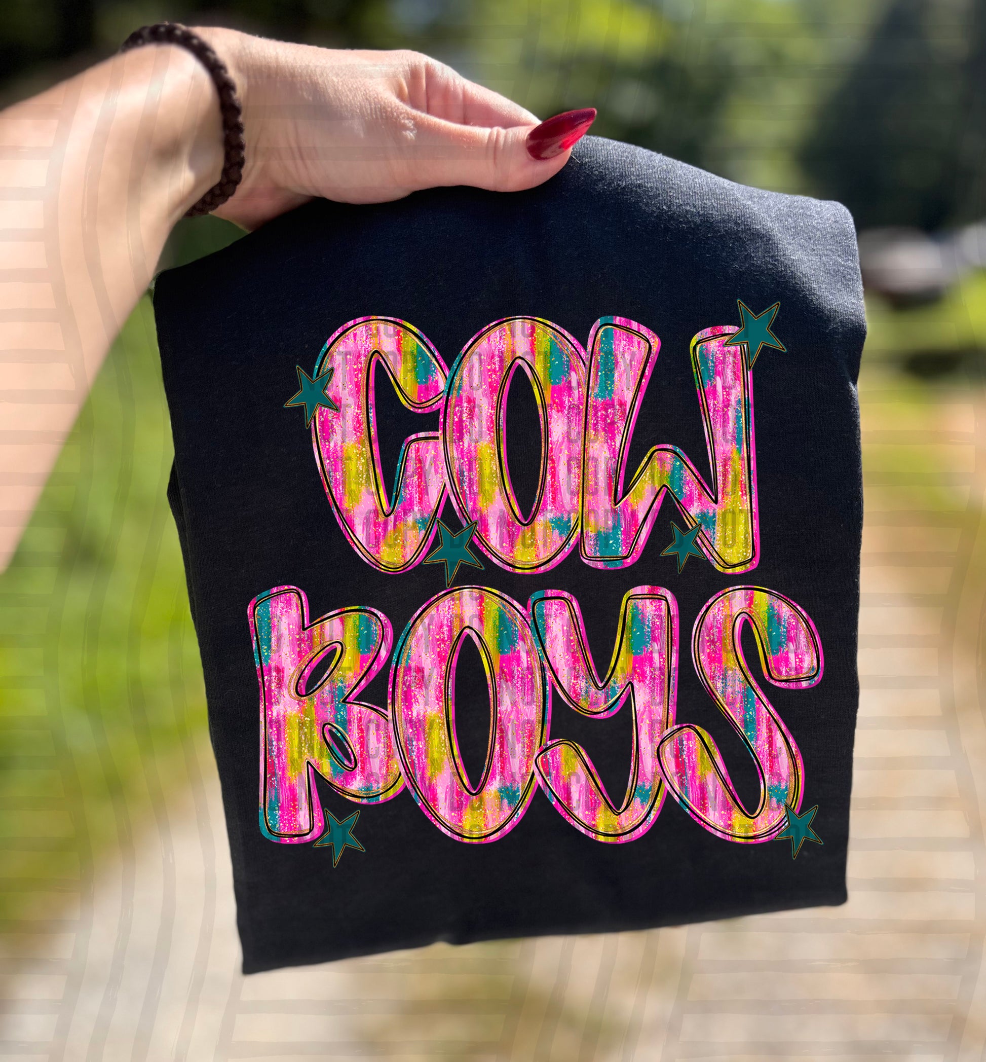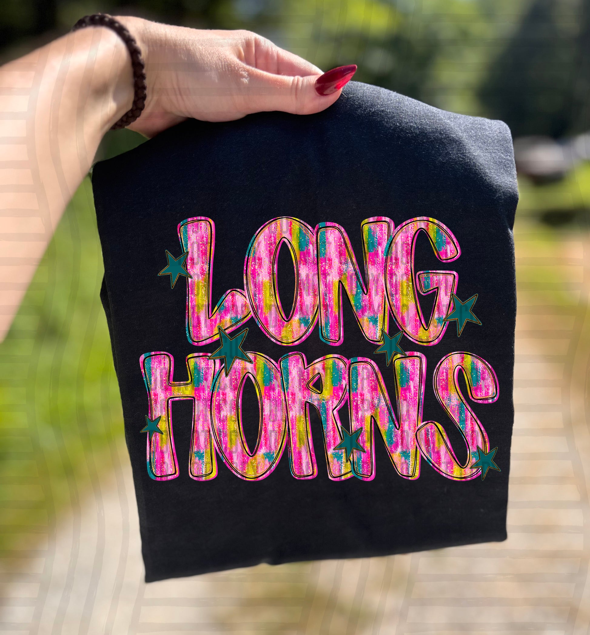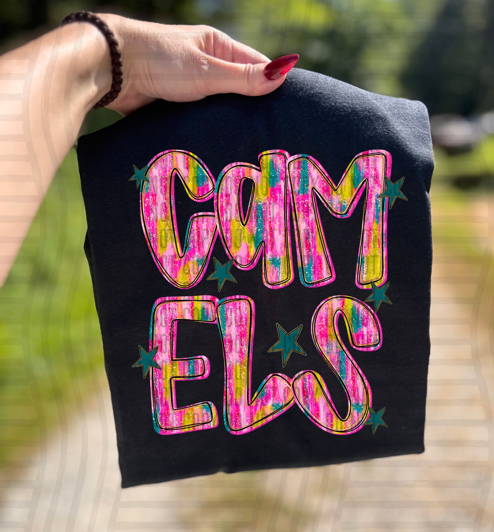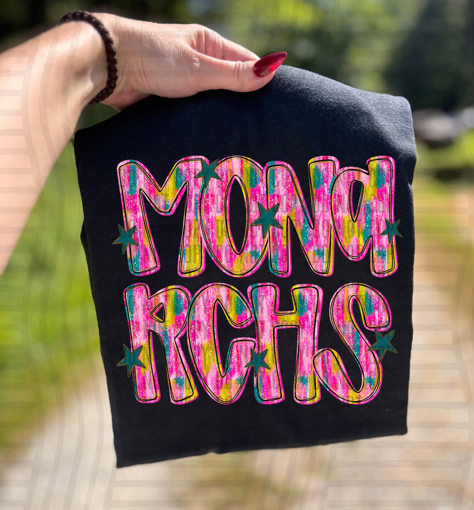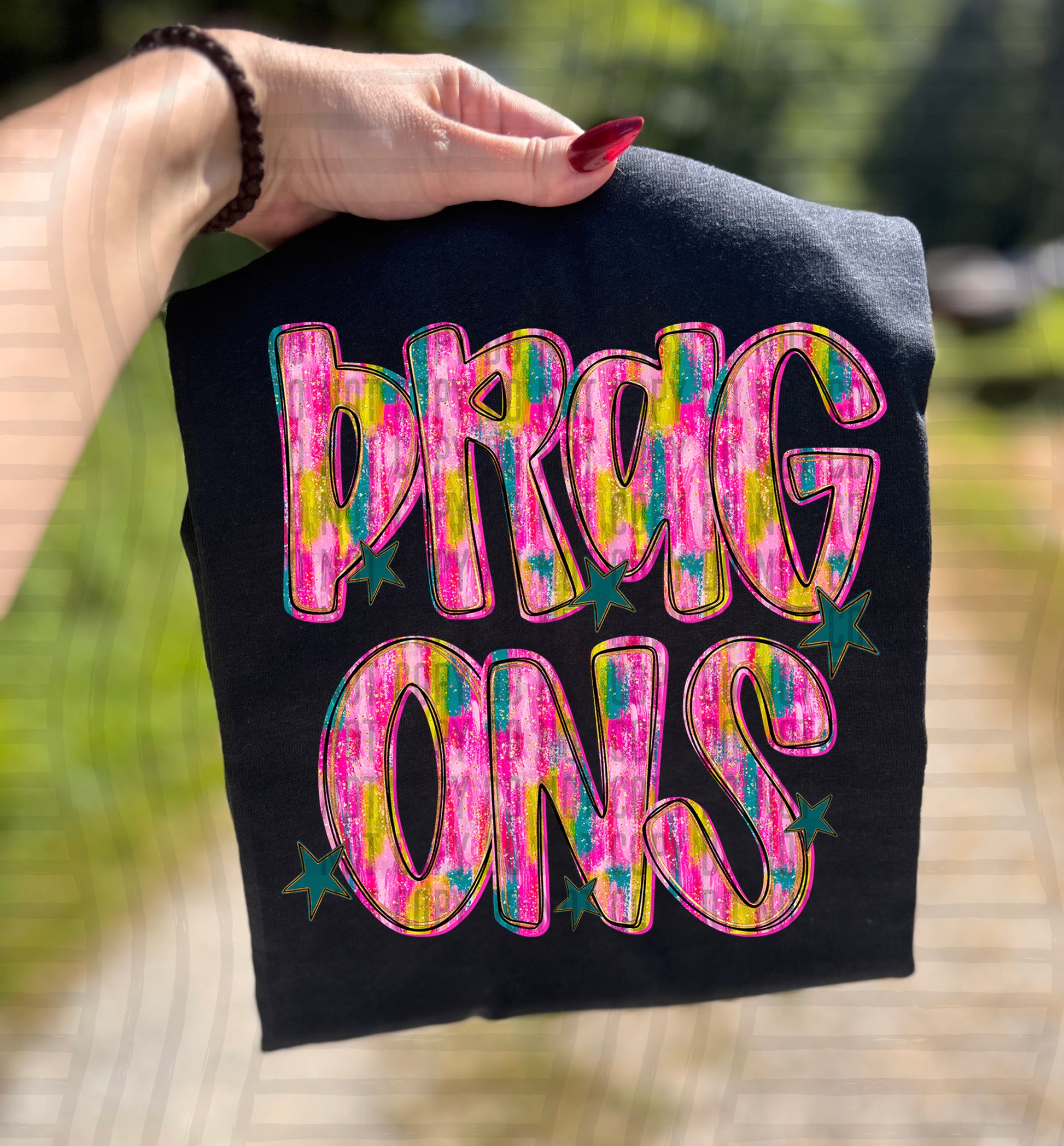 Actual colors may vary. Every monitor displays colors differently, and lighting or screen settings can affect how a color appears. Because of this, we can’t guarantee that the color you see on your screen will perfectly match the final printed transfer though we always strive to get as close as possible.