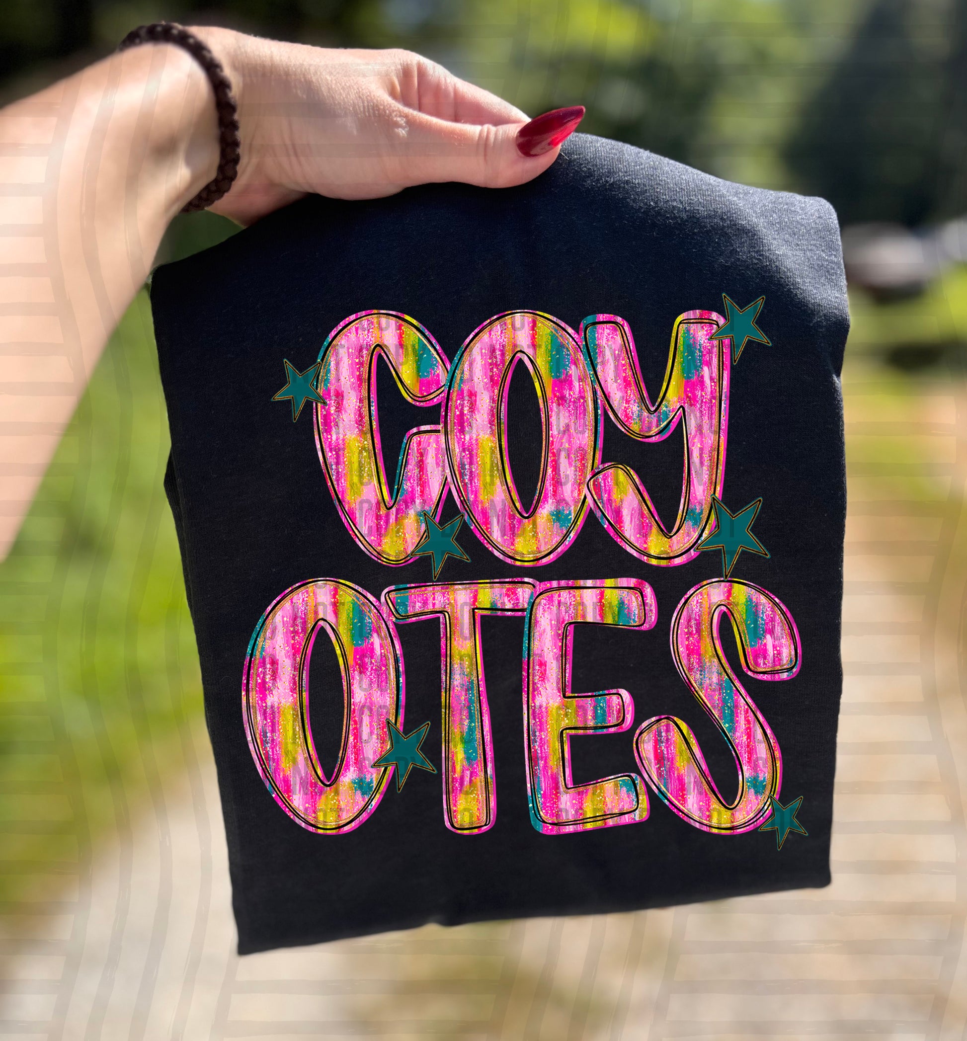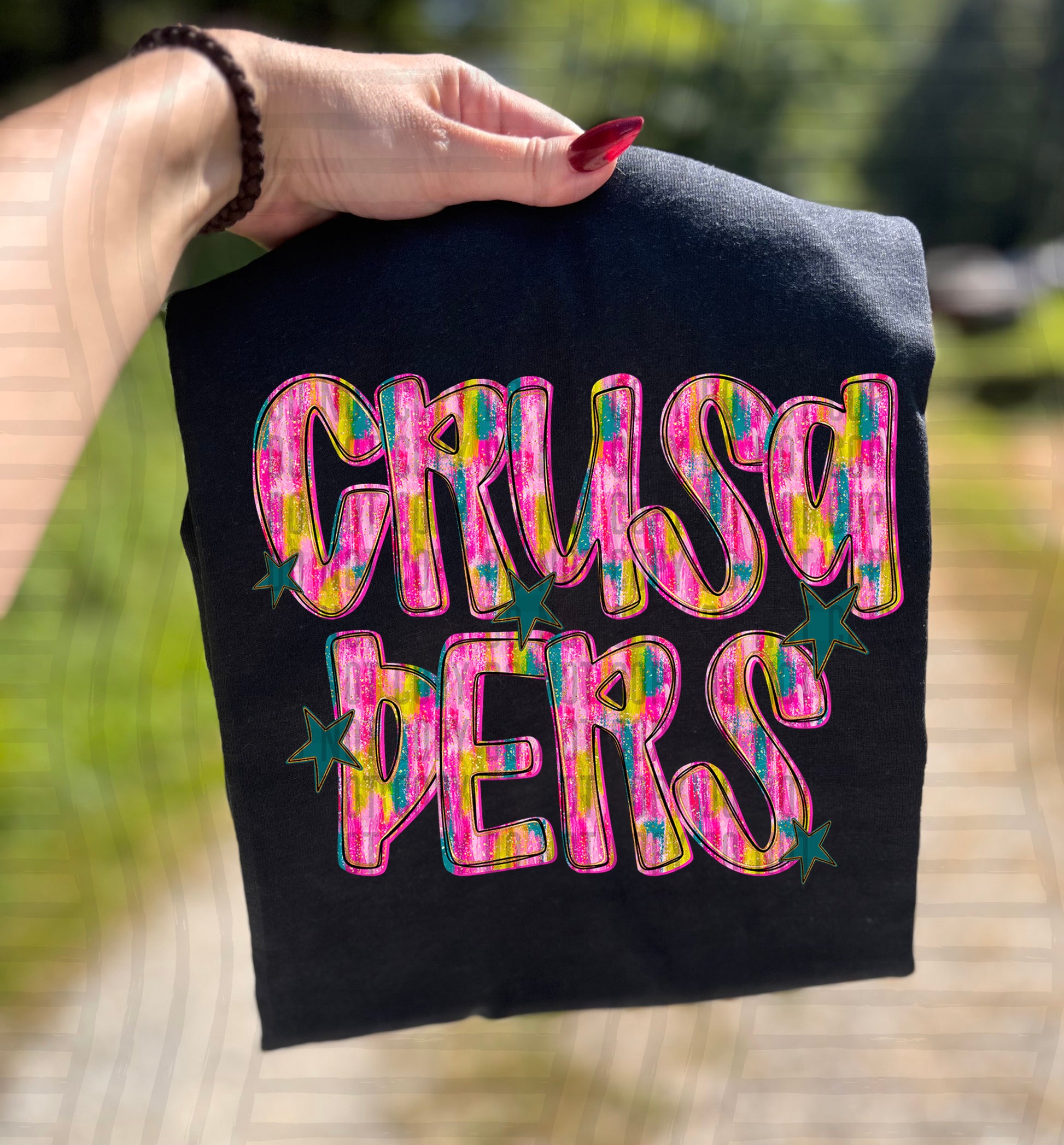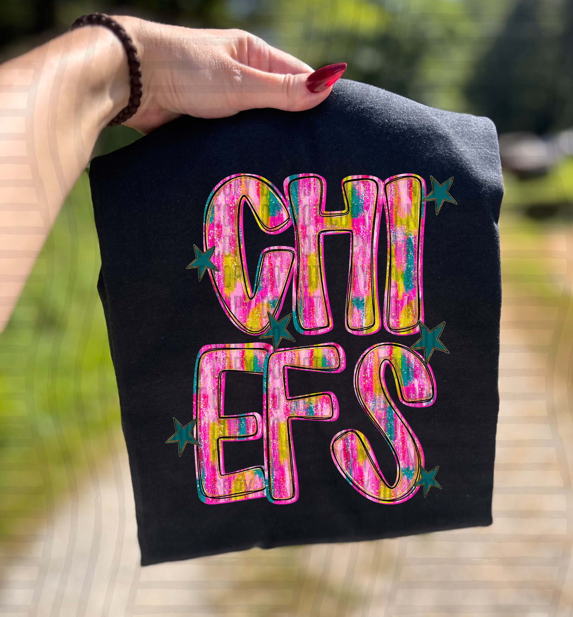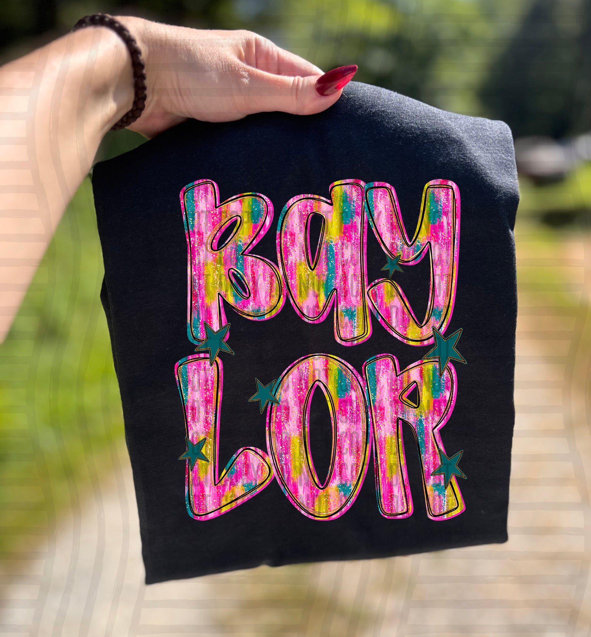 Actual colors may vary. Every monitor displays colors differently, and lighting or screen settings can affect how a color appears. Because of this, we can’t guarantee that the color you see on your screen will perfectly match the final printed transfer though we always strive to get as close as possible.