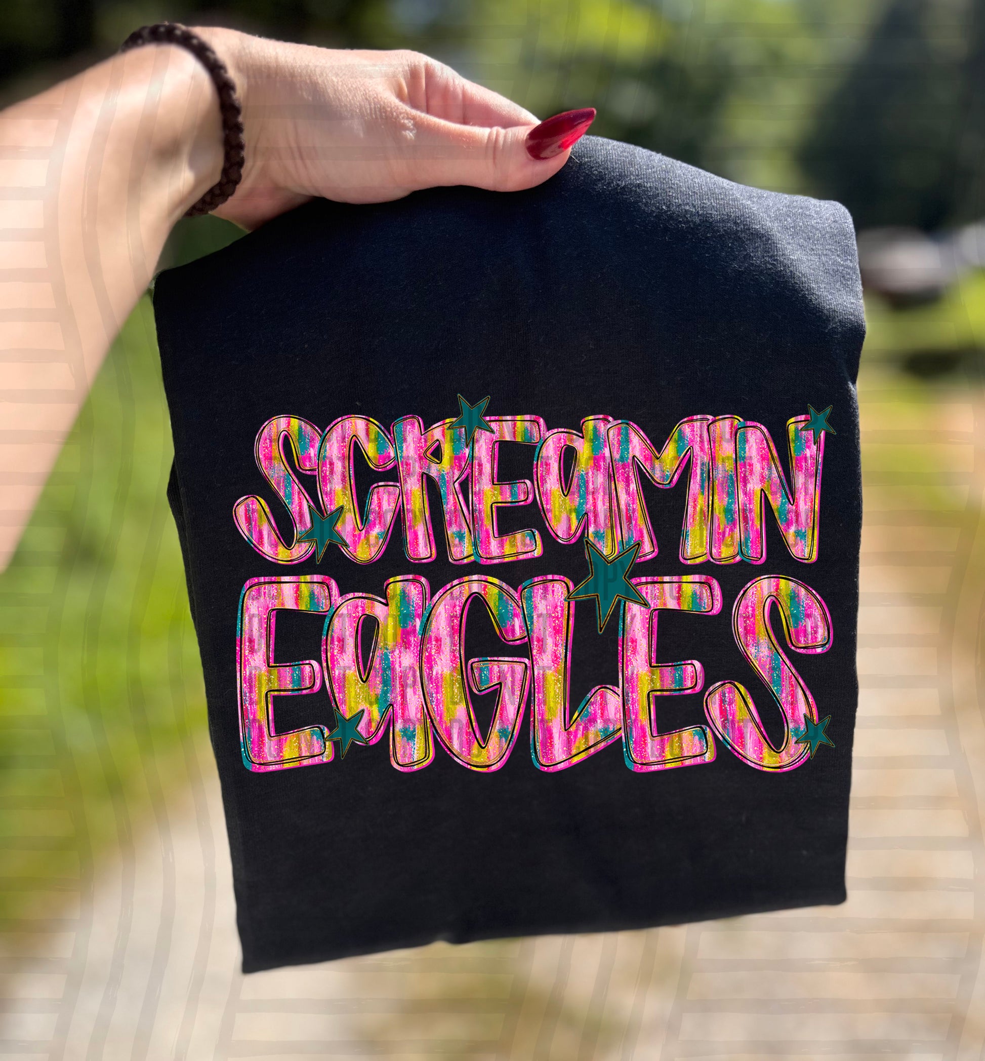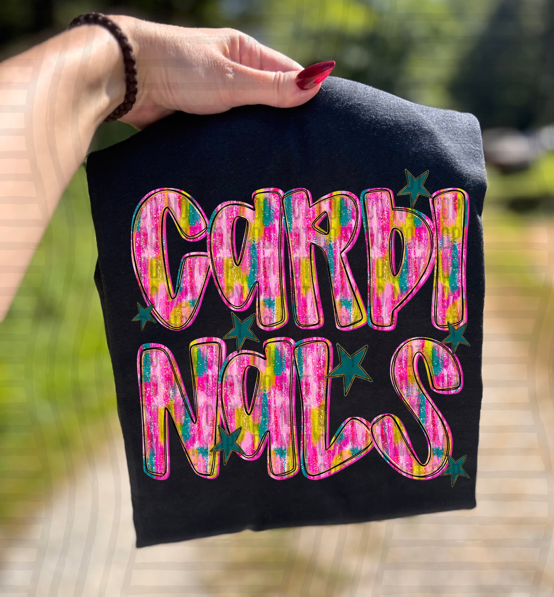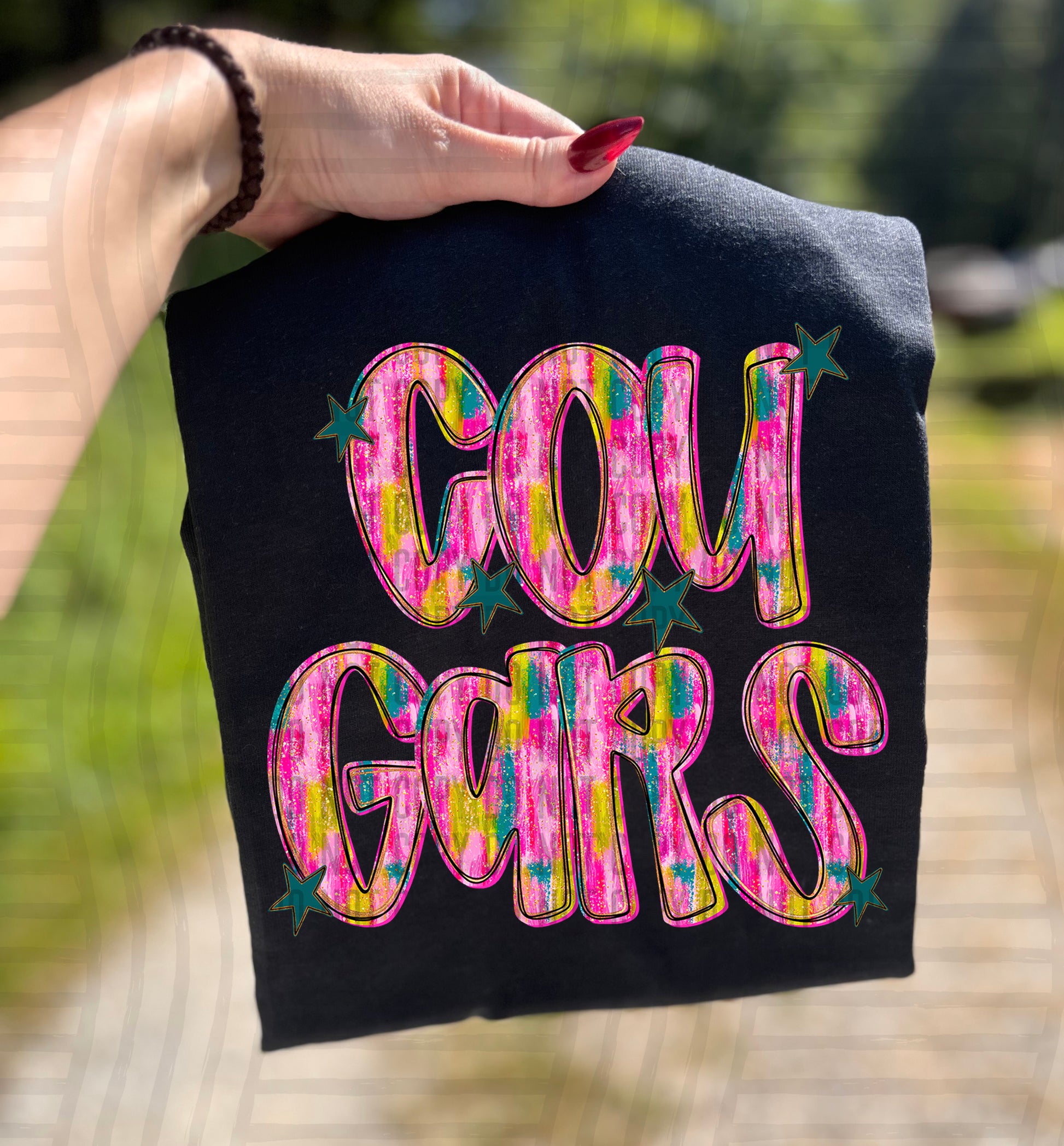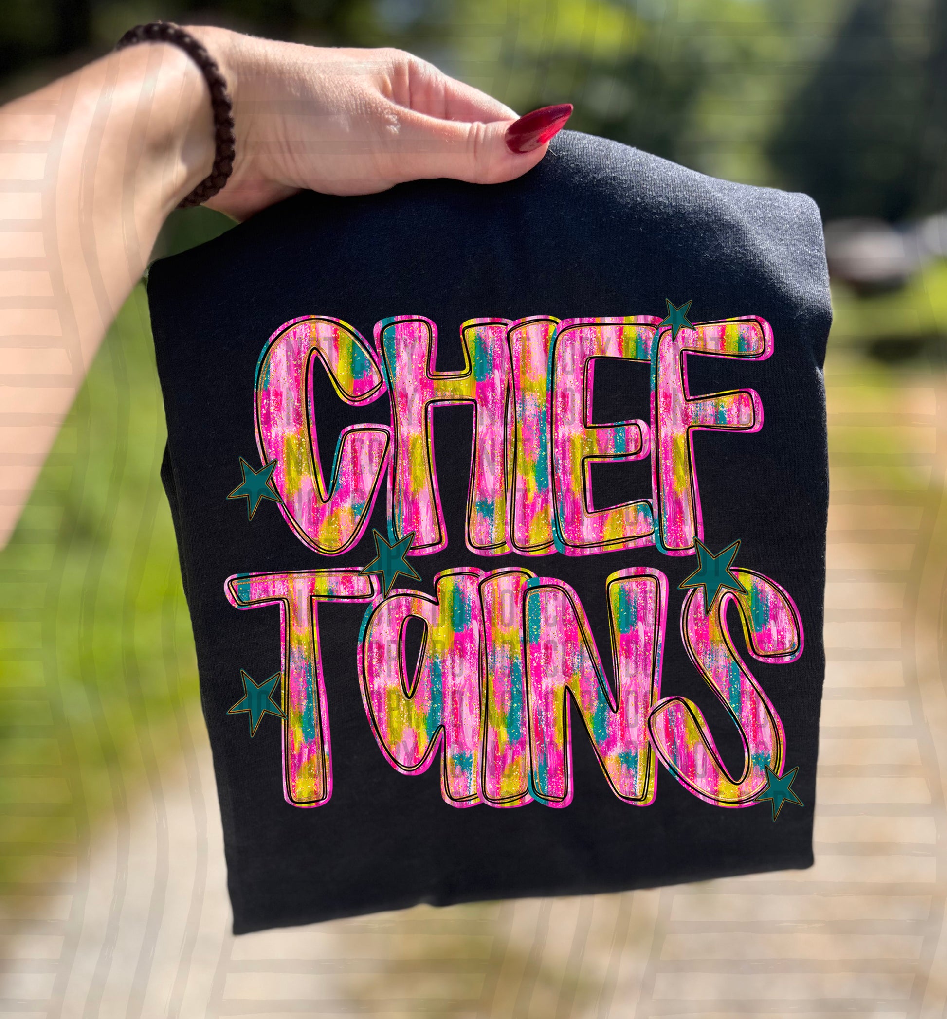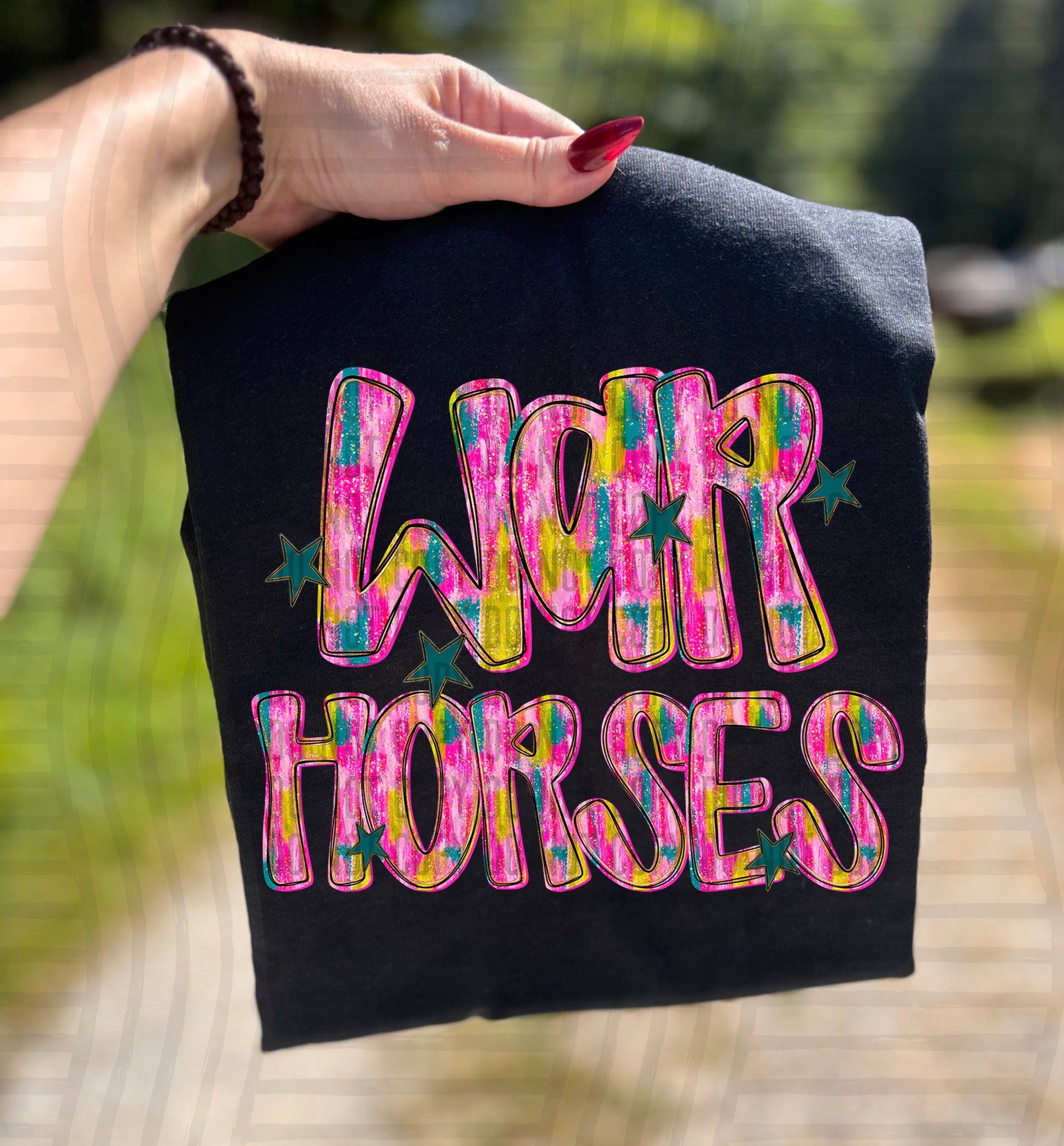 Actual colors may vary. Every monitor displays colors differently, and lighting or screen settings can affect how a color appears. Because of this, we can’t guarantee that the color you see on your screen will perfectly match the final printed transfer though we always strive to get as close as possible.