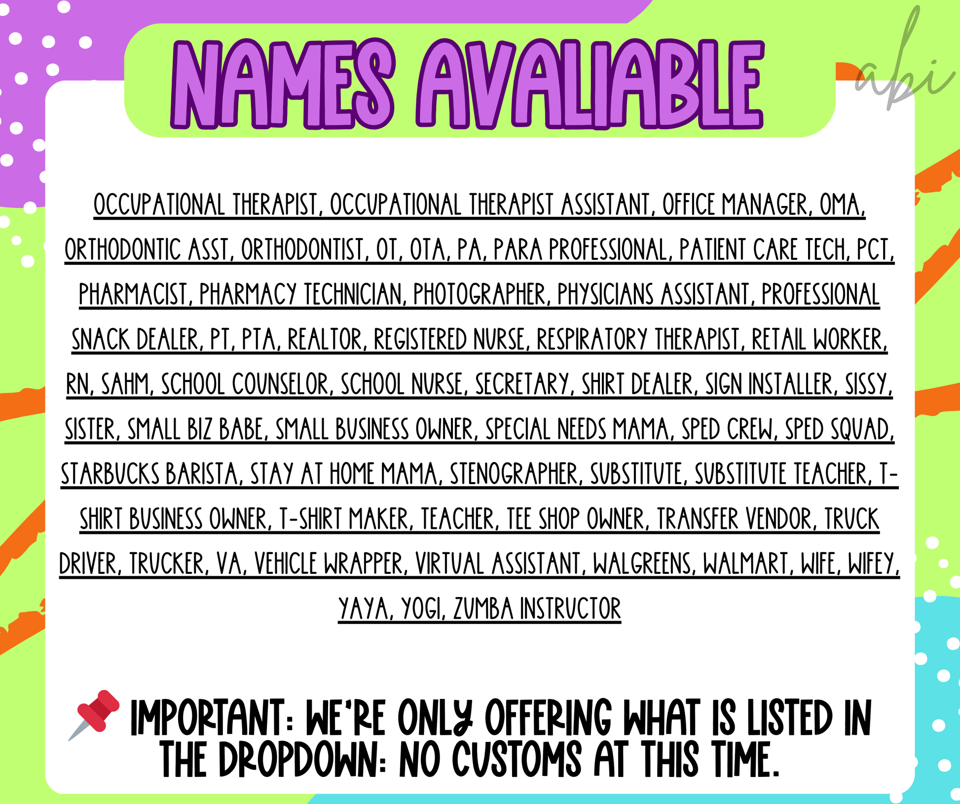 Juneberry brushstroke Names/Occupations(Dropdown)-DTF