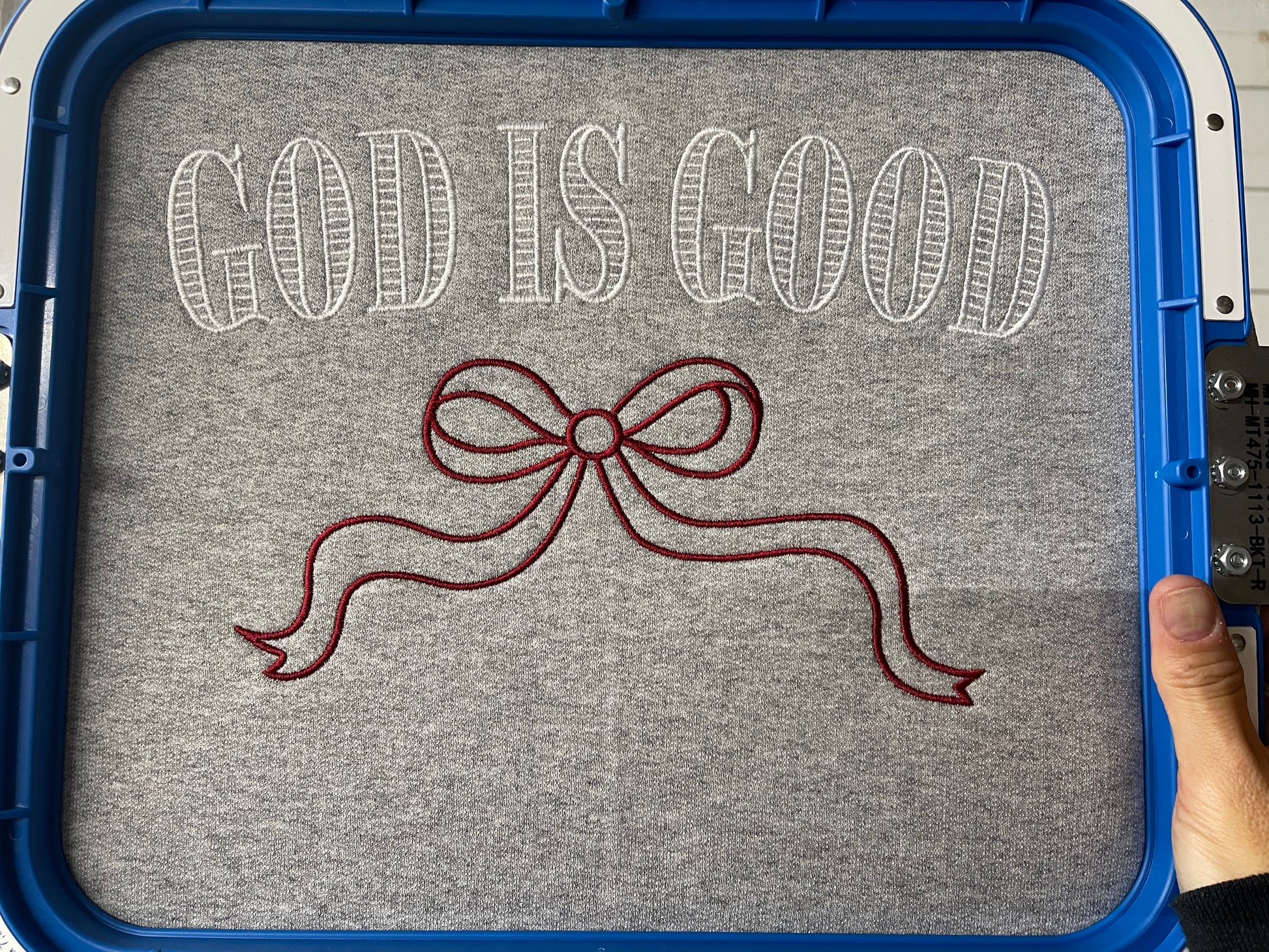 Customers may select their shirt color, but thread color cannot be changed.