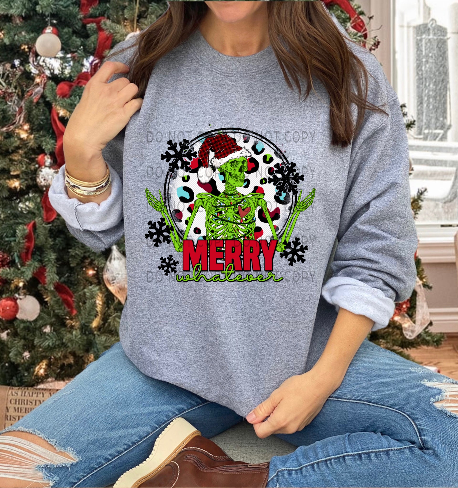 Merry Whatever Skelton With Multicolor Leopard Background - DTF