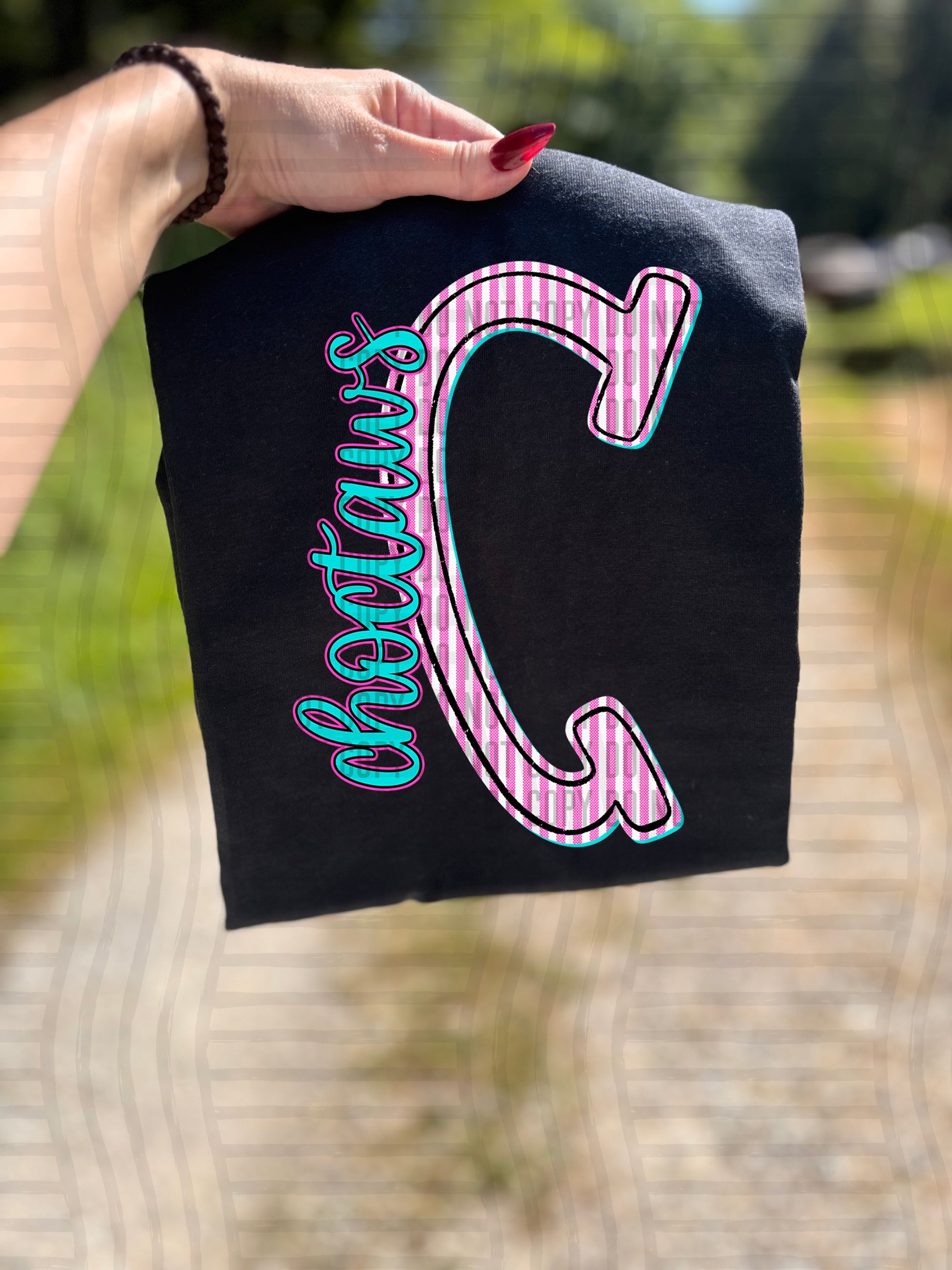 Actual colors may vary. Every monitor displays colors differently, and lighting or screen settings can affect how a color appears. Because of this, we can’t guarantee that the color you see on your screen will perfectly match the final printed transfer though we always strive to get as close as possible.